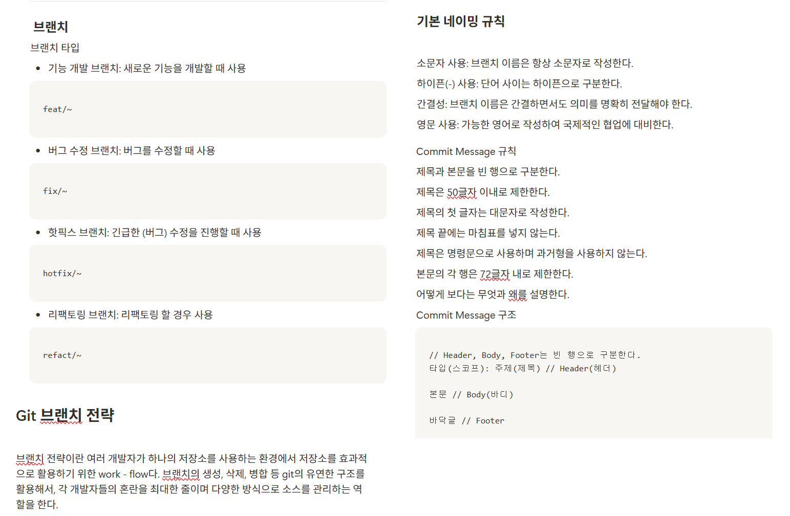 초기에는 main, dev 정도만 구분하고 브랜치나 커밋 메시지를 각자 알아서 작성해, 어떤 작업인지 명확히 알기 어려웠습니다. 브랜치 이름과 커밋 메시지가 제각각이어서 PR 승인 시에도 변경 내용을 파악하는 데 시간이 오래 걸렸습니다. 이를 개선하기 위해 작업 목적별로 브랜치 이름을 구분하고, 커밋 메시지 형식을 통일해 개발 내용을 명확히 드러냈습니다. 브랜치 전략과 커밋 규칙을 정한 후에는 누구나 작업 내용을 쉽게 이해하고, PR 검토 및 승인 과정이 간결해졌습니다. 결과적으로 Git 관리 효율이 높아지고 코드 리뷰 및 협업 품질이 향상되었습니다.