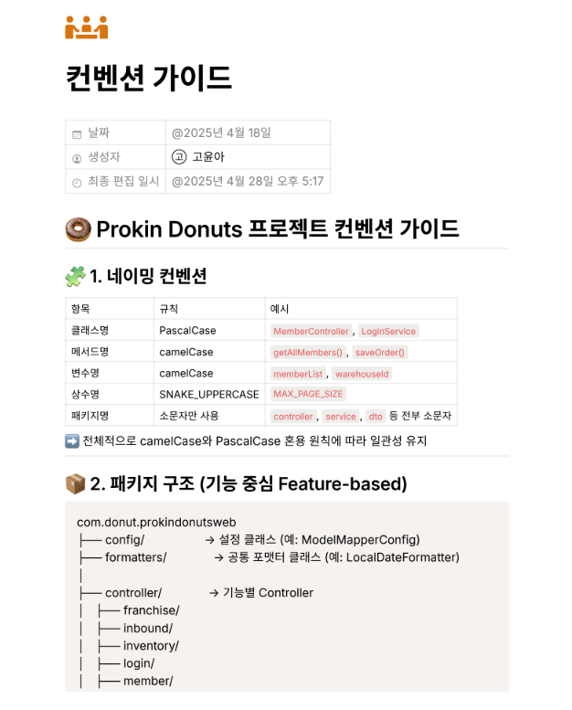 - 문서화를 기피했던 과거에서의 전환 처음엔 매번 문서를 작성하는 일이 번거롭게 느껴졌지만, 점차 기록이 쌓일수록 팀 내 정보 격차를 줄이고, 의사결정의 기준을 명확히 하는 데 큰 도움이 되었다.정형화된 템플릿을 활용해 문서를 작성하면서, 지식의 공유와 프로젝트 회고가 쉬워졌다는 점을 직접 경험했다.