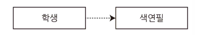 - 한 클래스가 다른 클래스를 참조하는 것으로 지역변수, 매개변수 등을 일시적으로 사용하는 관계이다.