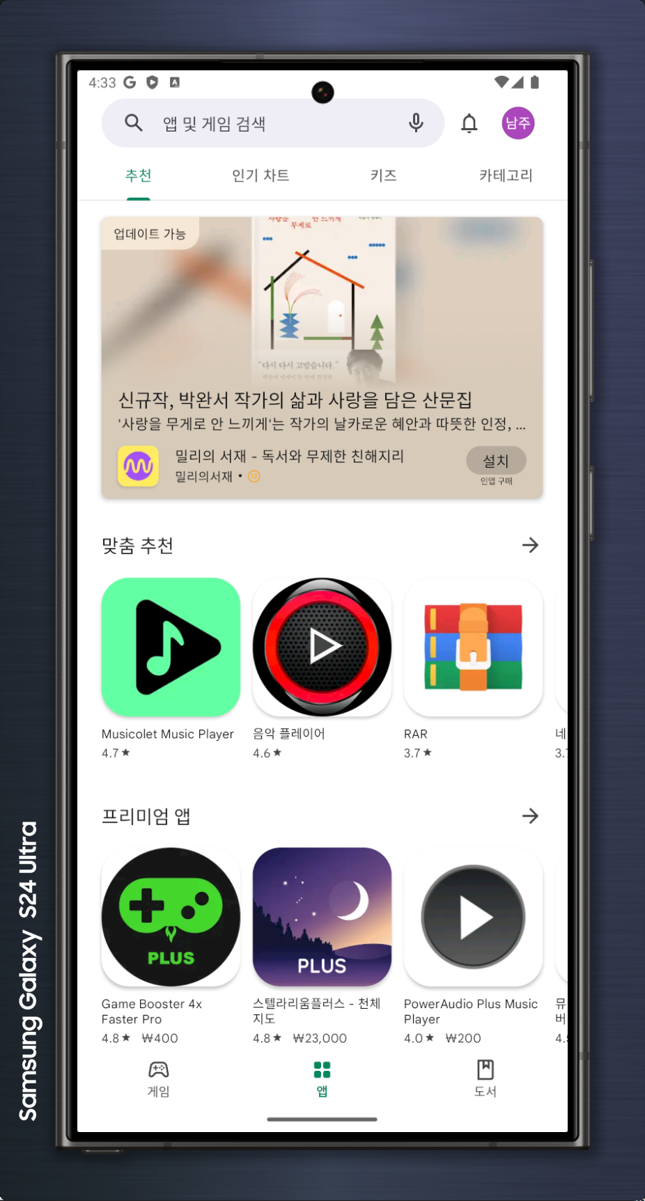 AVD를 기본세팅하면 Play Store가 설치되어 있지 않다. 따라서 Play Store를 설치하는 것을 추천한다.