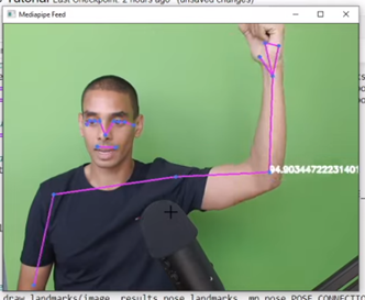 아래처럼 각도가 나오는 것이다. 위에서 shoulder, elbow, wrist 지정했던 곳을 내가 원하는 곳으로 바꾸면 원하는 곳의 각도 등을 계산할 수 있을 것으로 예상된다.