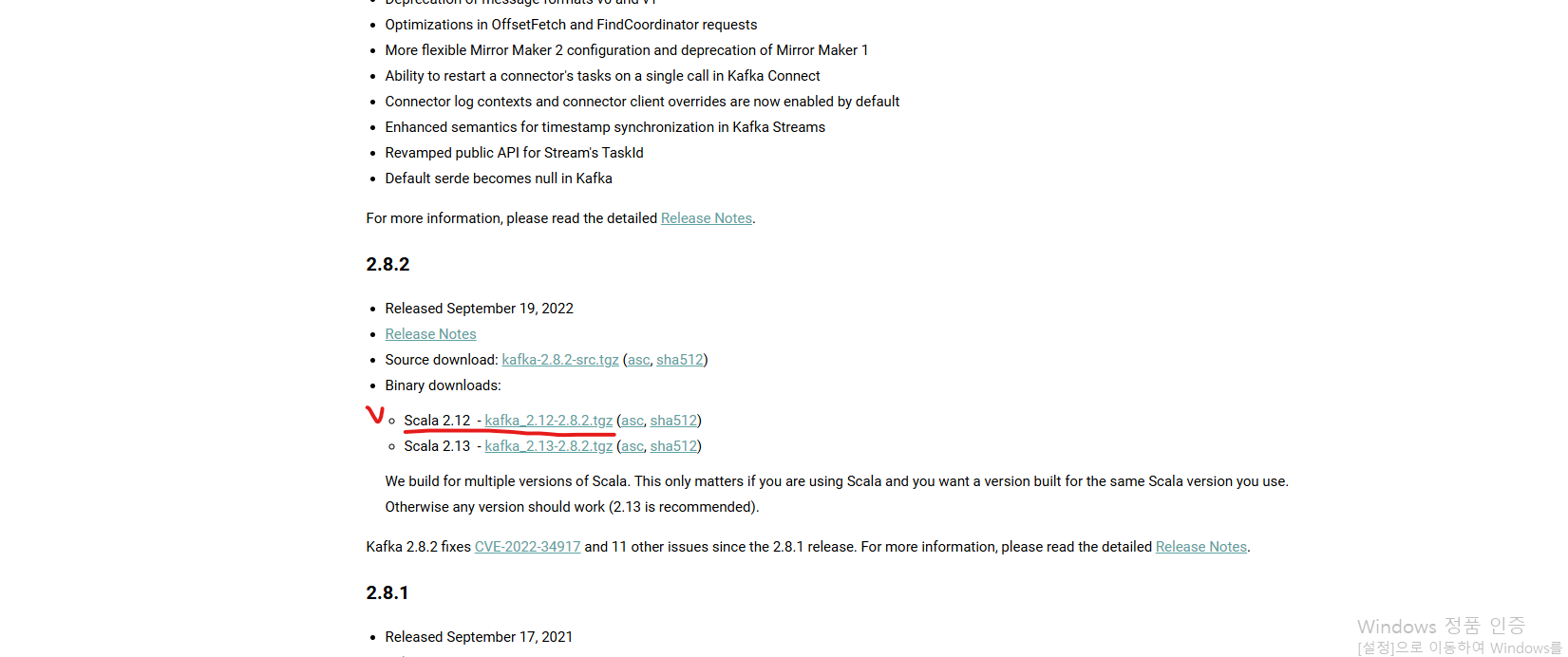 kafka 다운로드 링크(클릭)