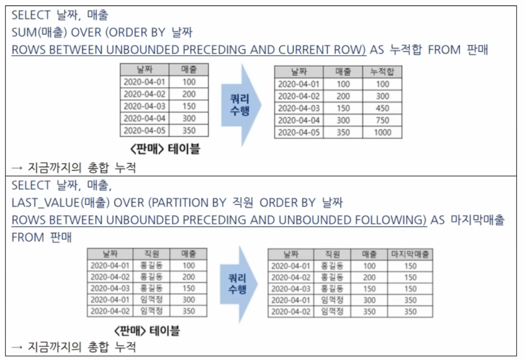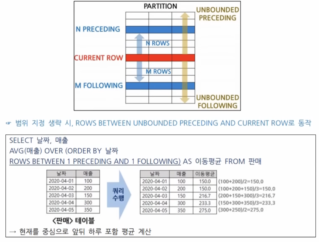 ROWS BETWEEN [시작 범위] AND [끝 범위]