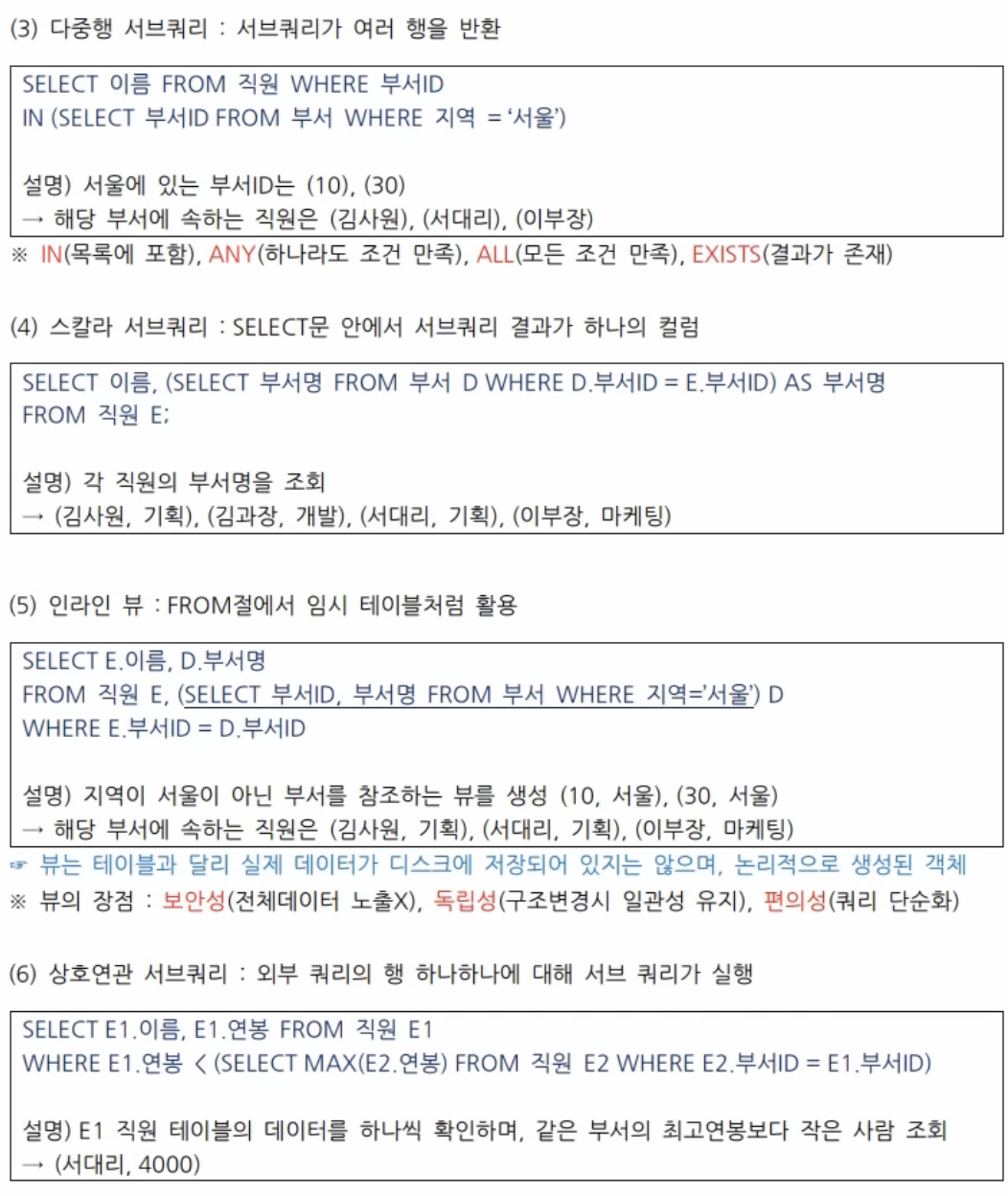 3) 그외 서브쿼리들