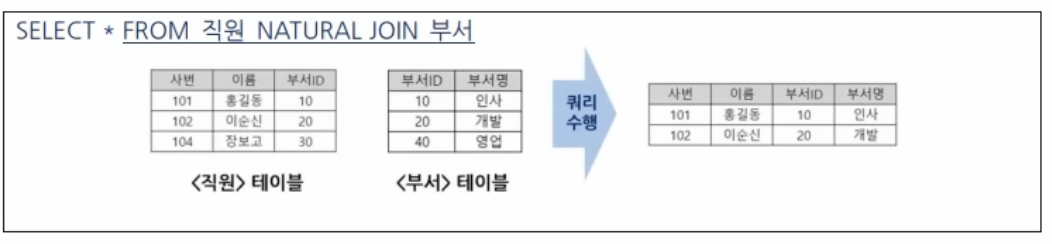 두 테이블 간에 동일한 이름을 갖는 모든 컬럼에 대해 EQUI JOIN 수행