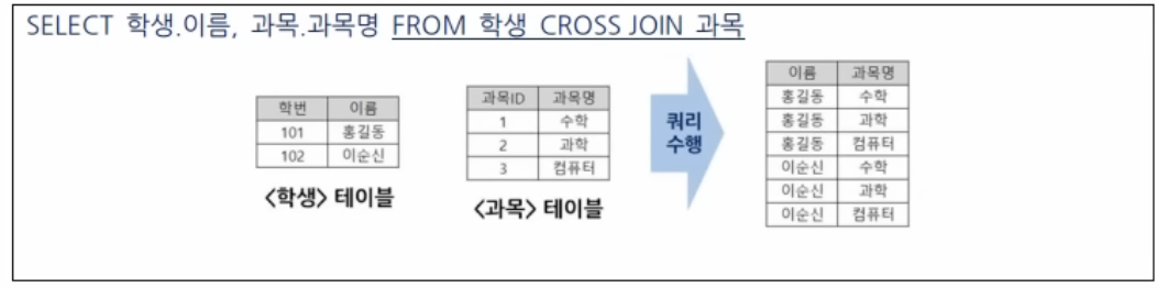 두 테이블의 모든 행을 조합하여 출력