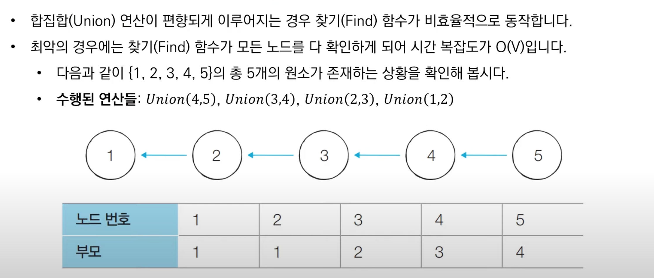 따라서 부모 노드를 갱신하는 경로 압축 기법을 이용하면 좀 더 효율적인 연산이 가능하다.