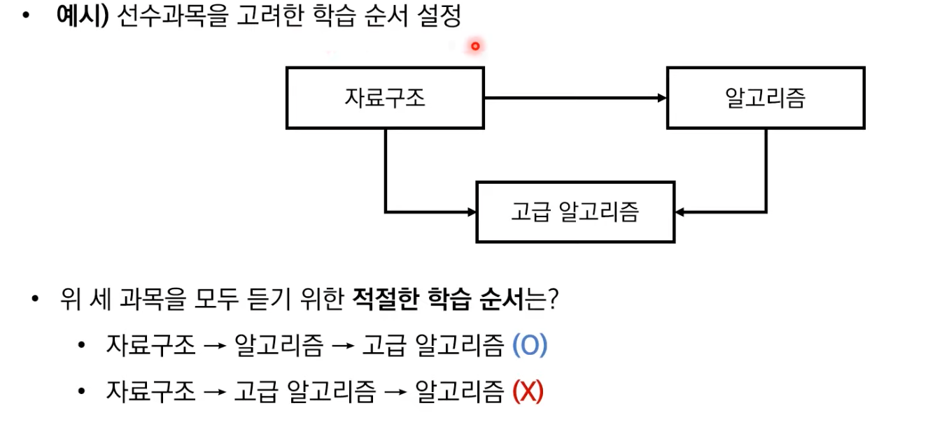 방향 그래프의 모든 노드를 '방향성에 거스르지 않도록 순서대로 나열하는 것