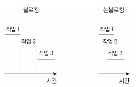 블로킹: 동기. 코드가 순서대로 실행된다