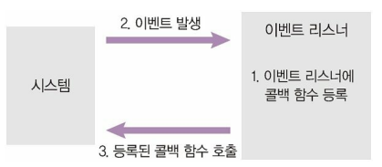 이벤트가 발생할 때 미리 지정해둔 작업을 수행하는 방식.