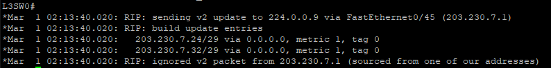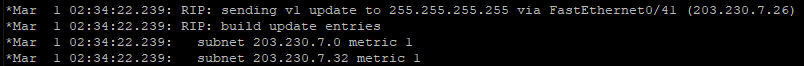 RIP: sending v1 update to 255.255.255.255 via FastEthernet0/41 (203.230.7.26)