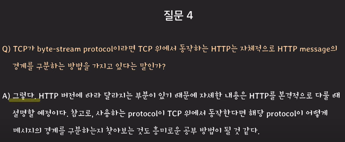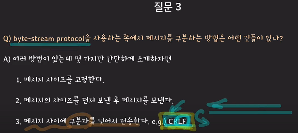 데이터를 받은 애플리케이션 레이어는 하나의 byte흐름을 구분하는 책임을 가진다.