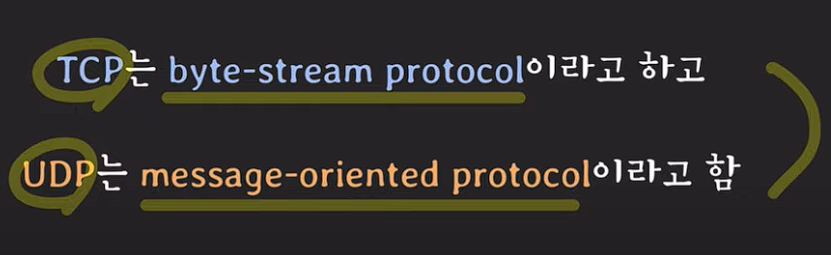 TCP를 byte-stream protocol이라고 하고 UDP를 message-oriented protocol이라고 한다.