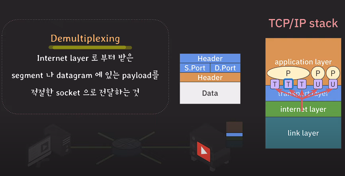 transport layer의 주된 역할 : Demultiplexing, Multiplexing