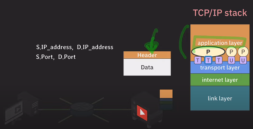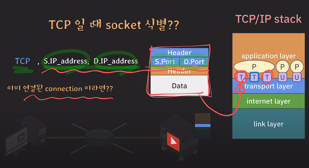 transport layer에서 특정 socket을 통해 애플리케이션에 데이터를 정보를 전달해 주어야하는데 헤더에 담긴 port를 확인하고 socket을 식별한다.