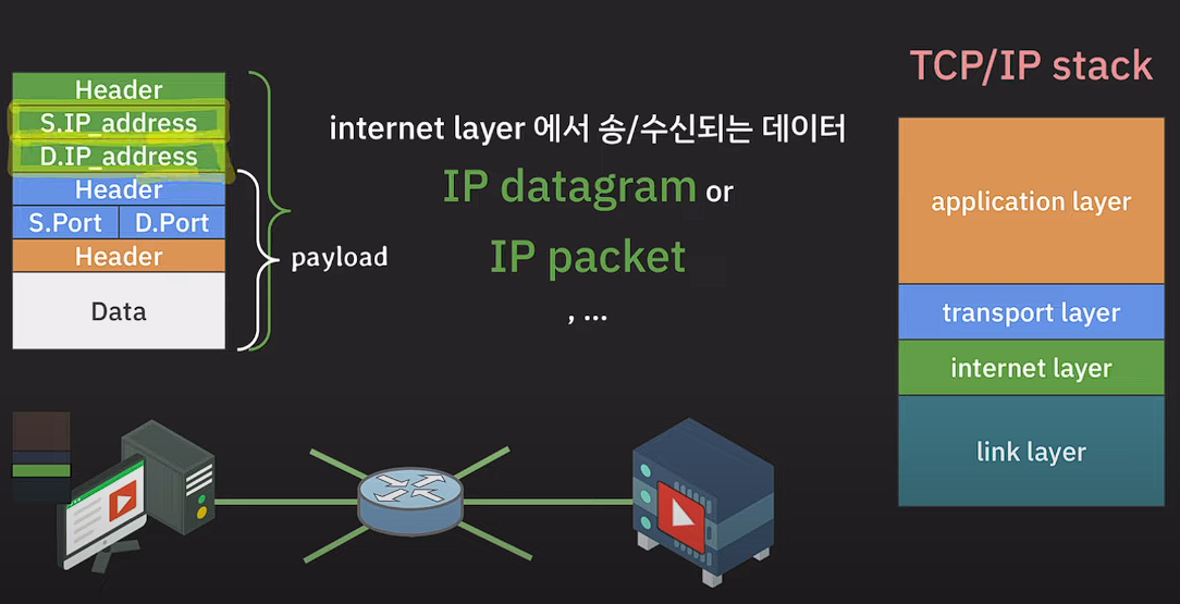 internet layer에서 header를 추가하면 (IP)datagram, (IP)packet이라 부른다.