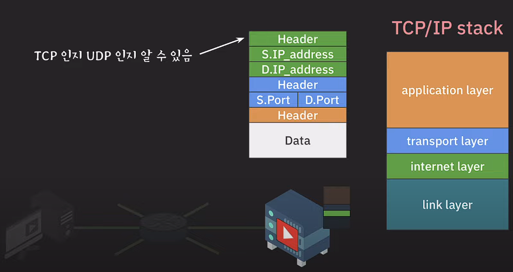 TCP인지 UDP인지 정보를 추가하는 layer는 internet layer이다.