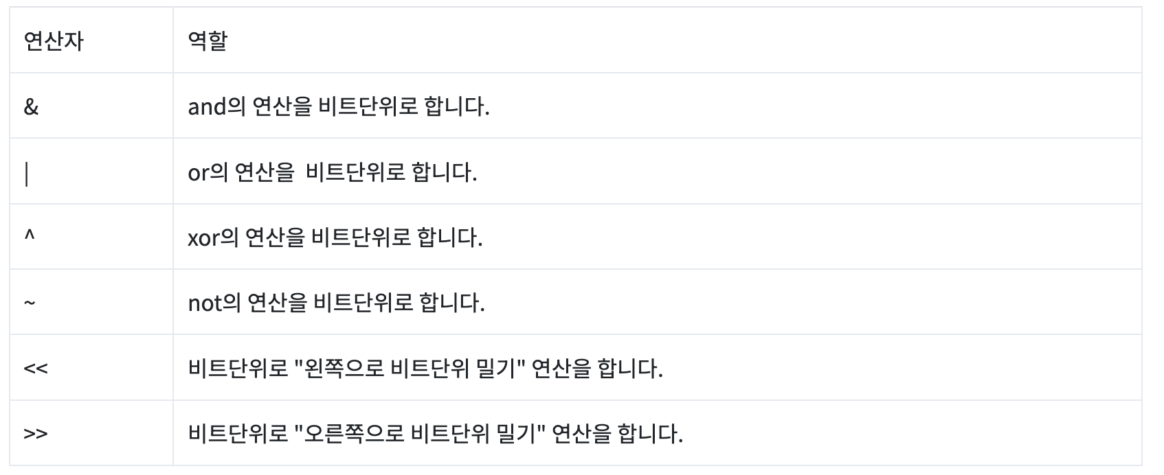 비트단위로 연산을 하는 연산자로, 메모리를 절약할 수 있는 연산자이다.