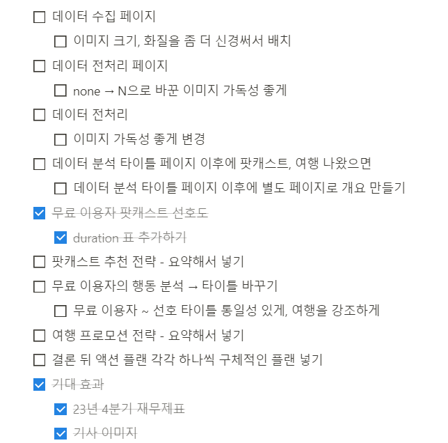 - 시각화 계획 : 데이터를 시각적으로 표현하여 인사이트를 도출하는 계획 제시