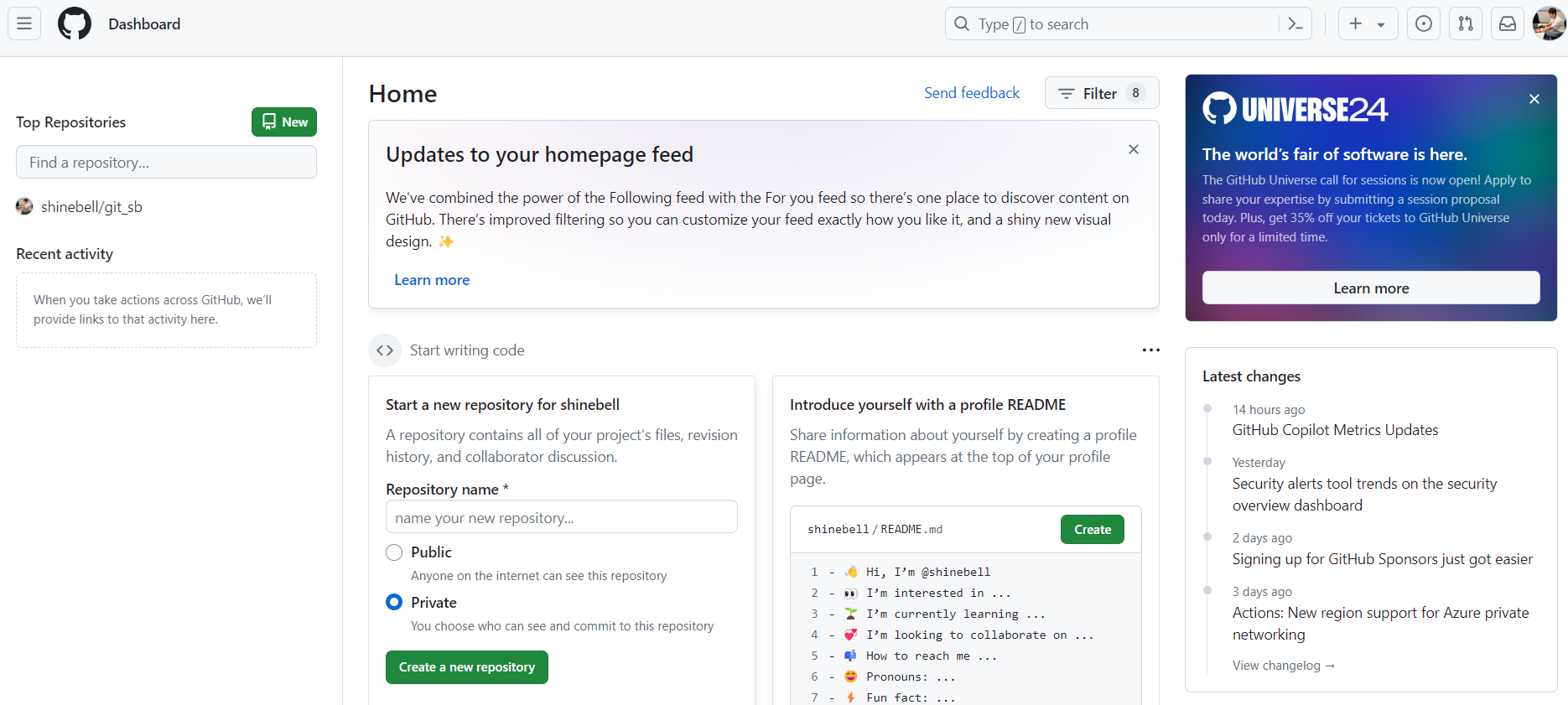 GitHub의 해당 레포지토리 페이지 새로고침하여 살펴보기