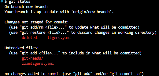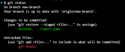 git rm tigers.yaml로 삭제하고git status로 살펴보기