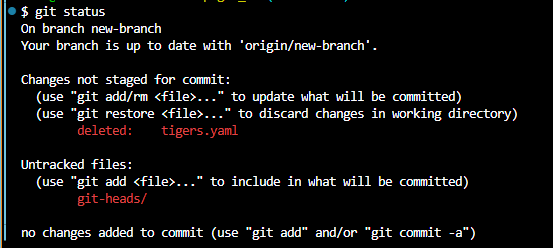 tigers.yaml를 삭제해본 뒤git status로 살펴보기
