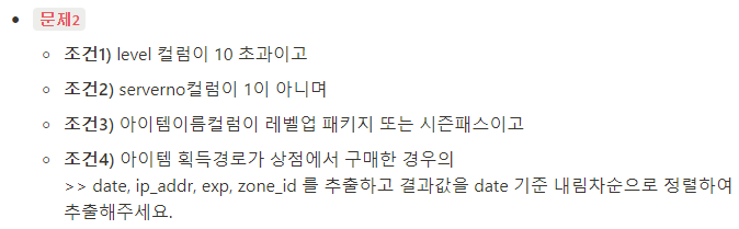 ✔️ 문제 #2: 여러 가지 조건에 부합하는 값 추출