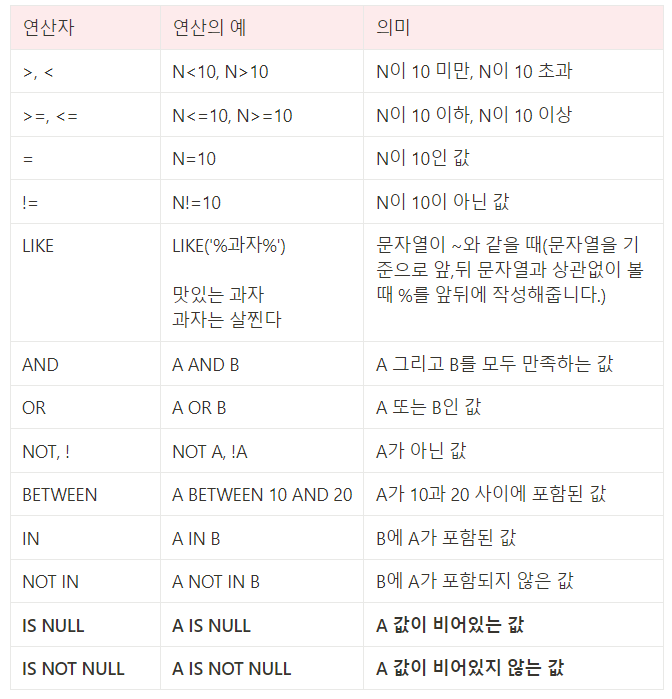 ORDER BY: 특정 열(칼럼)을 기준으로 결과값을 출력할 때 사용하는 함수
