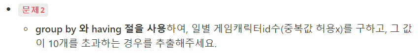 ✔️ 문제 #2: GROUP BY 와 HAVING 절을 사용하여, 특정 데이터값 추출