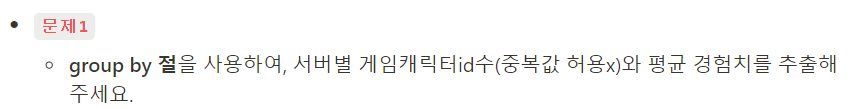 ✔️ 문제 #1: GROUP BY 절을 사용하여, 특정 데이터값 추출