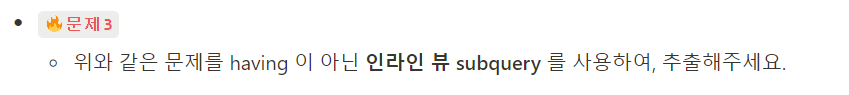 ✔️ 문제 #3: SUB QUERY 사용하여, 특정 데이터값 추출