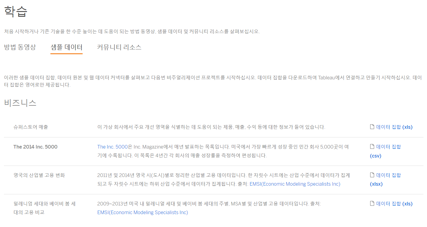 태블로에서 제공하는 샘플데이터에서 찾아보다가 INC 5000 이라는 데이터를 발견하게 되었고,