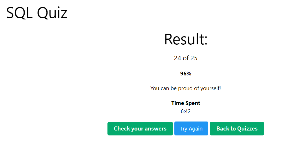 오늘은 찾다 찾다 SQL Quiz 를 풀어봤다.