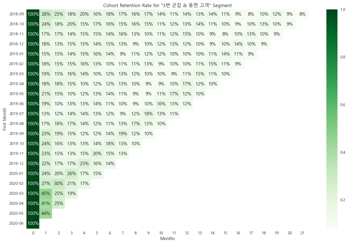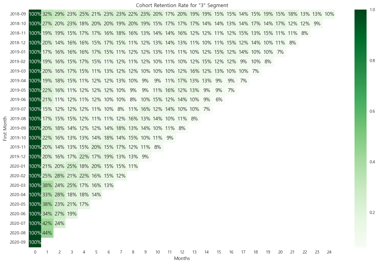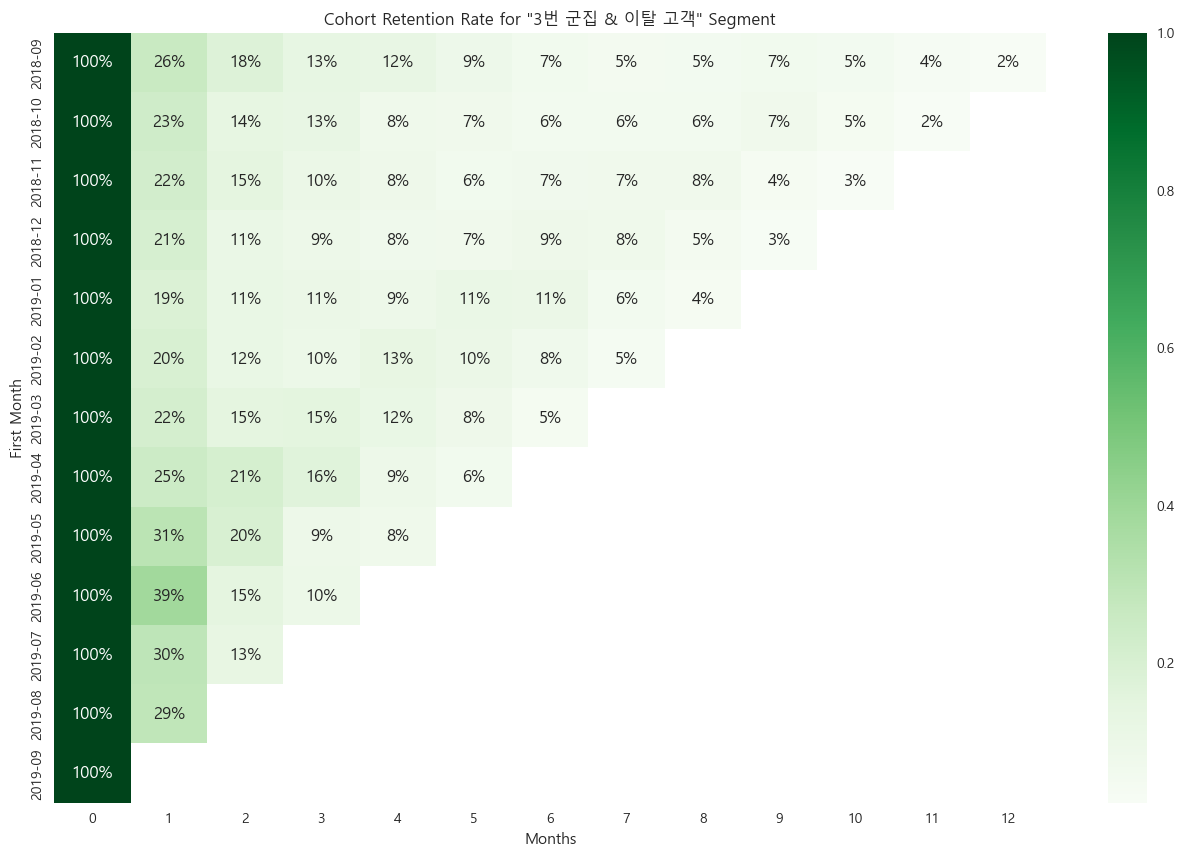 3번 군집의 코호트 리텐션