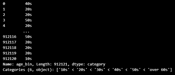 print("\n", f"레이블 인코딩 후 customer_id의 고유값 개수 : {modeling_df['age_bin'].nunique()}")