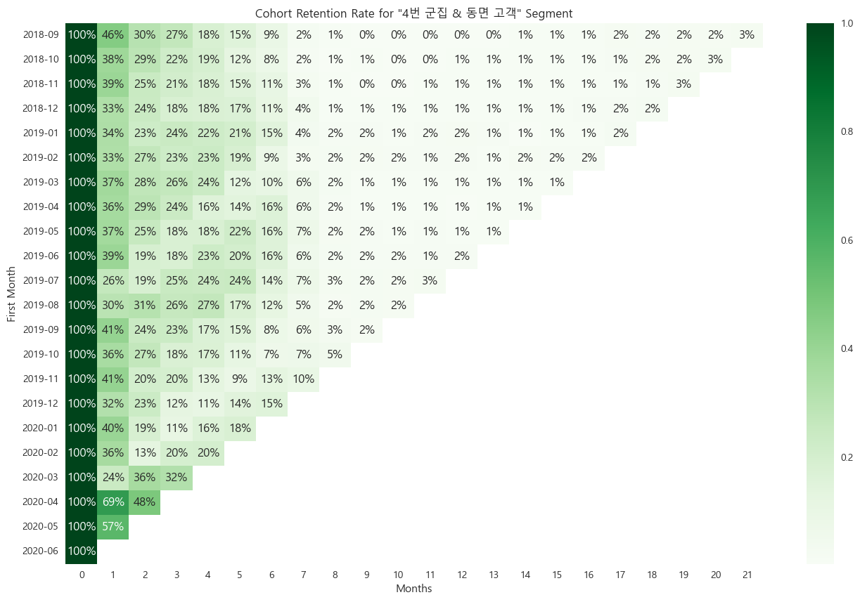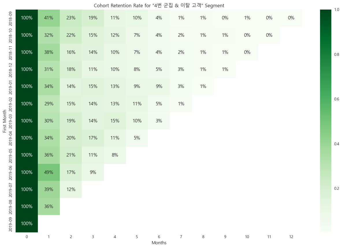3, 4번 군집의 이탈, 동면 고객 각 교차점 고객들의 코호트 리텐션