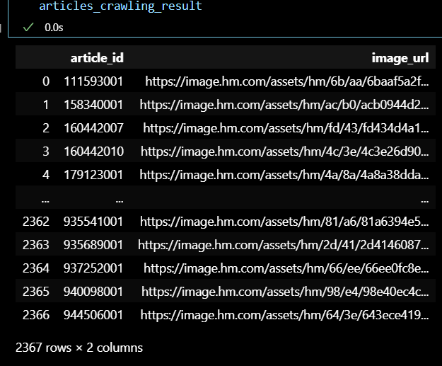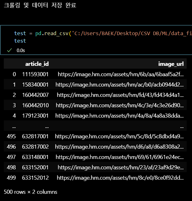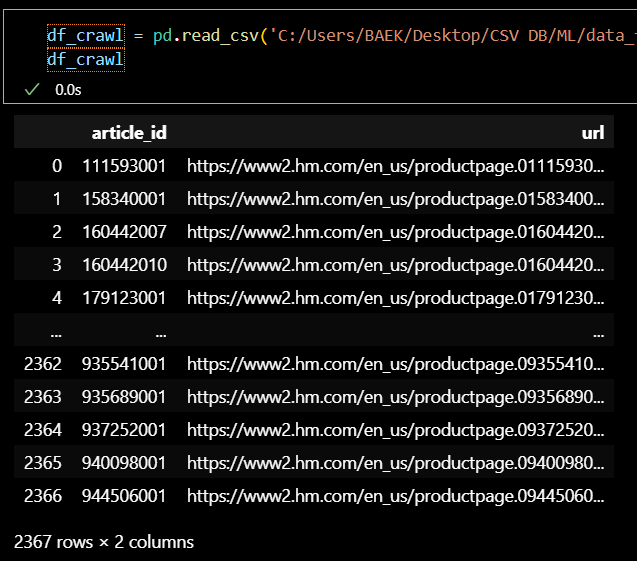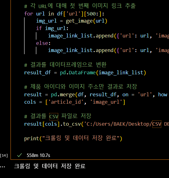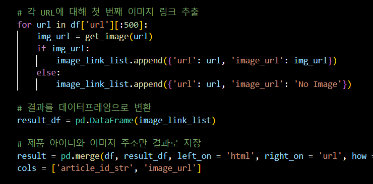 약 2400개 제품에 대한 이미지 링크 크롤링 시도