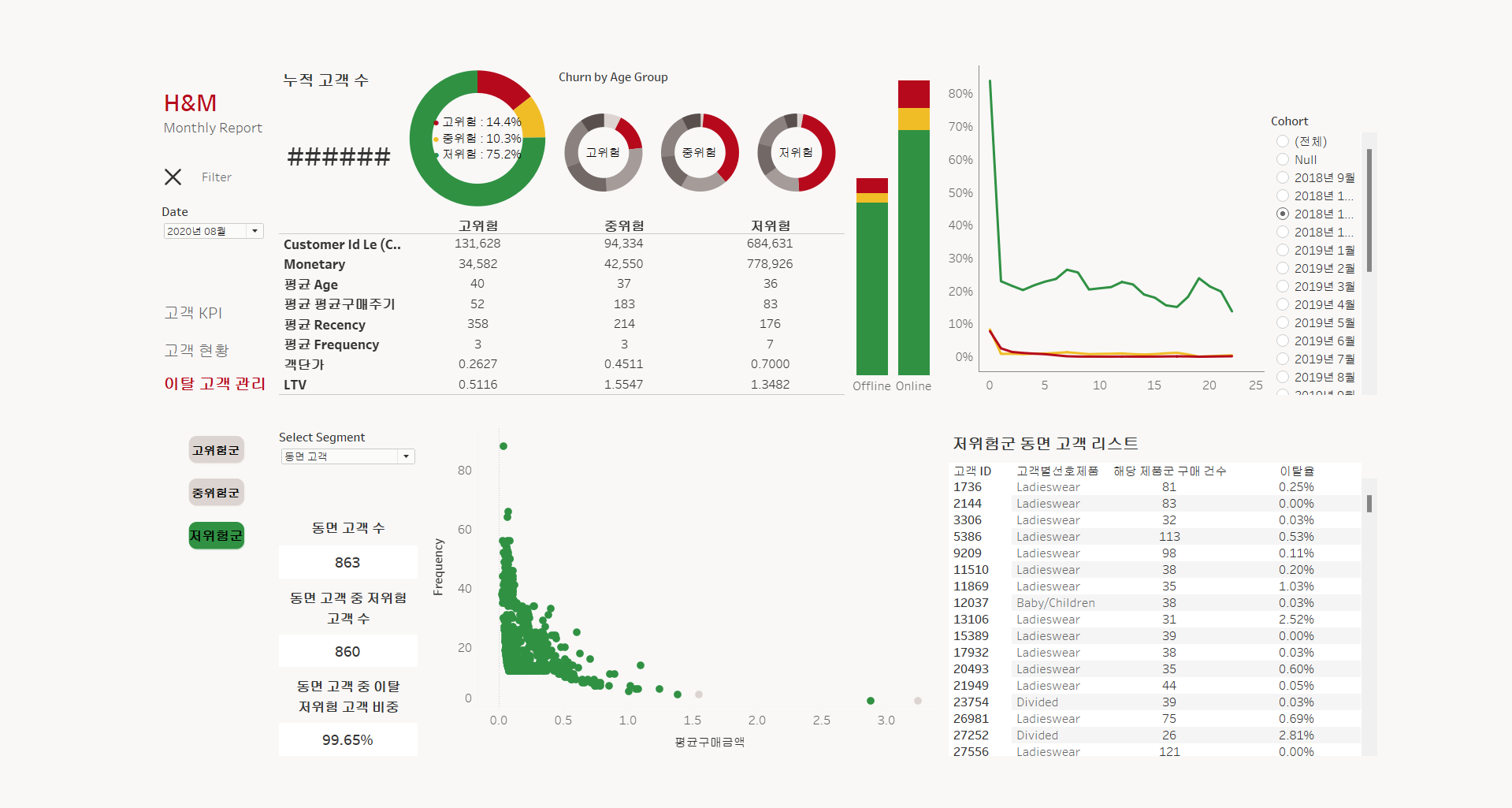 리텐션 지표 수정 필요 (Date 필터 기준 해당 월의 위험군별 리텐션 확인)