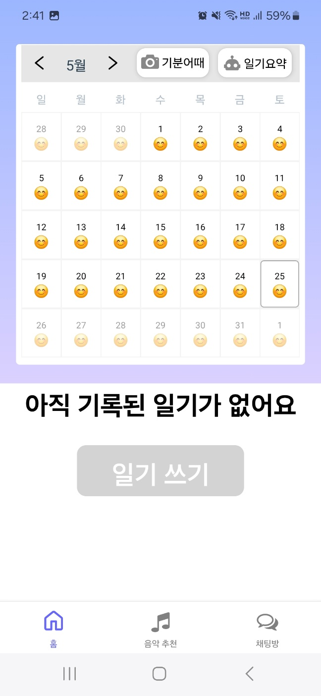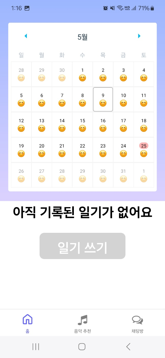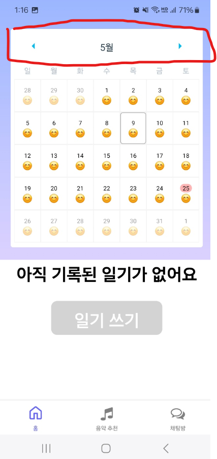 이제 캘린더의 대략적인 UI는 완성이 되고 있다. 이제 AsyncStorage를 통해 각 날짜마다 일기 및 이모지를 저장해주어야 한다.