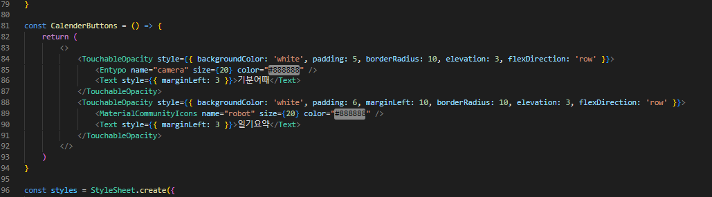 이처럼 CalenderButtons 컴포넌트를 정의하고, 얘네를 우측화살표에 position:'absolute'를 사용하여 강제로 붙여버렸다.