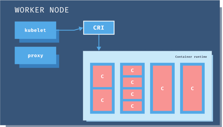 - kubelet이 다양한 컨테이너 런타임과 통신할 수 있도록 쿠버네티스가 자체적으로 준비한 인터페이스이다.