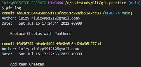 reset 명령어를 통해 원하는 commit상태로 돌아간다.