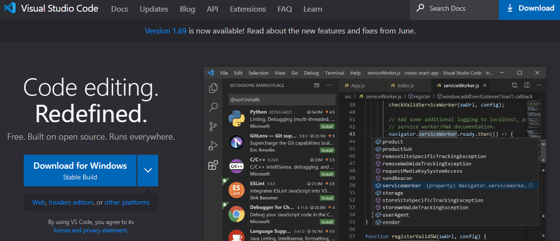 기존 VS랑 VS code를 비교해놓은 글인데 유,무료차이, VS의 뛰어난 확장성 프로그램의 무게정도의 차이가 있다고한다.