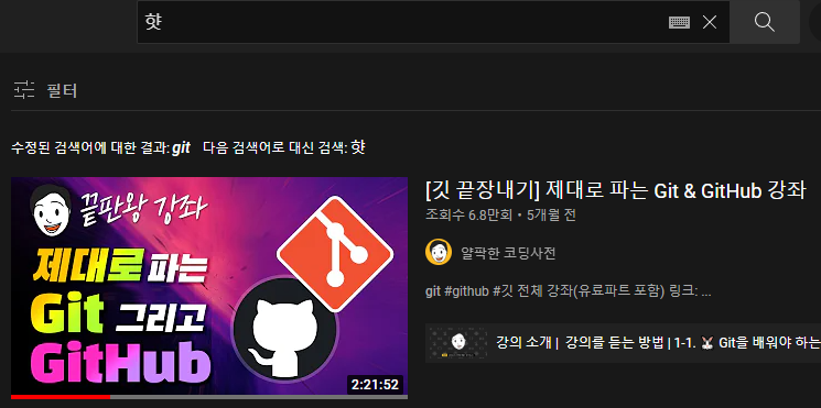 코딩 공부를 마음먹고, 아직은 나의 얕은 지식이 GitHub같은곳에 코드를 올리고 내릴 줄 알아야겠다는 생각에 무작정 유튜브에 GitHub를 검색해 가장 상위에 있는 강의를 듣기 시작했다.
