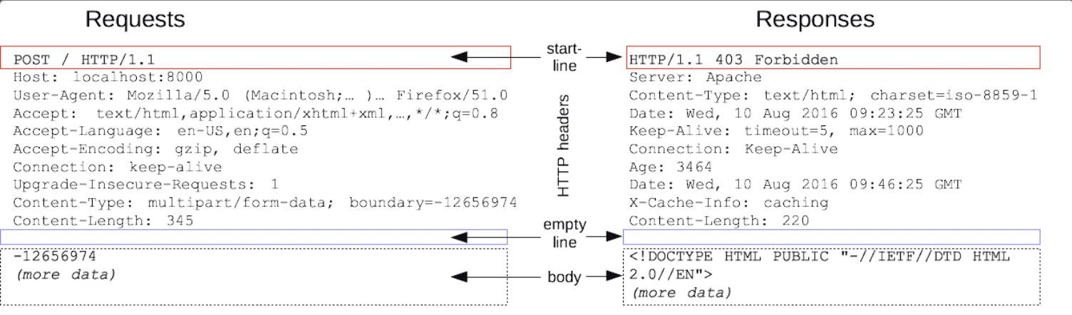 HTTP (Hypertext Transfer Protocol)에서 Request(요청)과 Response(응답)는 웹 서버와 웹 클라이언트(일반적으로 웹 브라우저) 간에 데이터를 교환하는 데 사용되는 두 가지 주요 메시지 유형입니다.