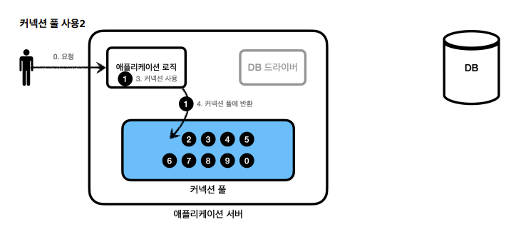 1. 애플리케이션 로직-> [db 드라이버]를 통해 커넥션을 조회.