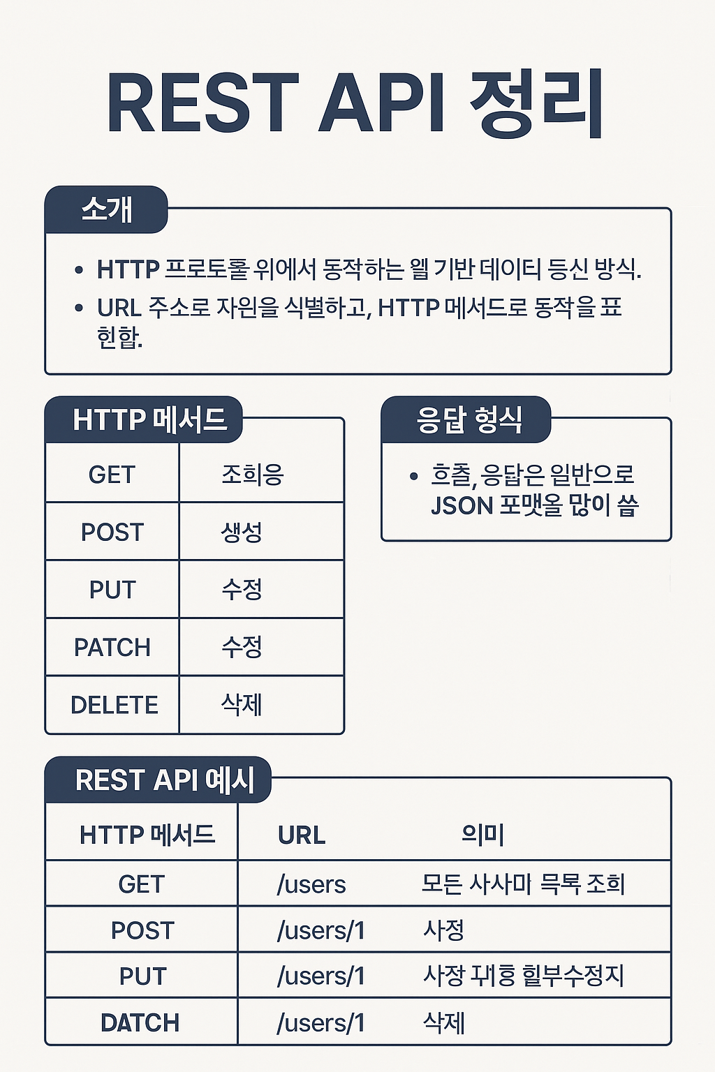 - REST API๋ ํ๋ ์น/์ฑ ๊ฐ๋ฐ์ ํต์ฌ ํ์ค