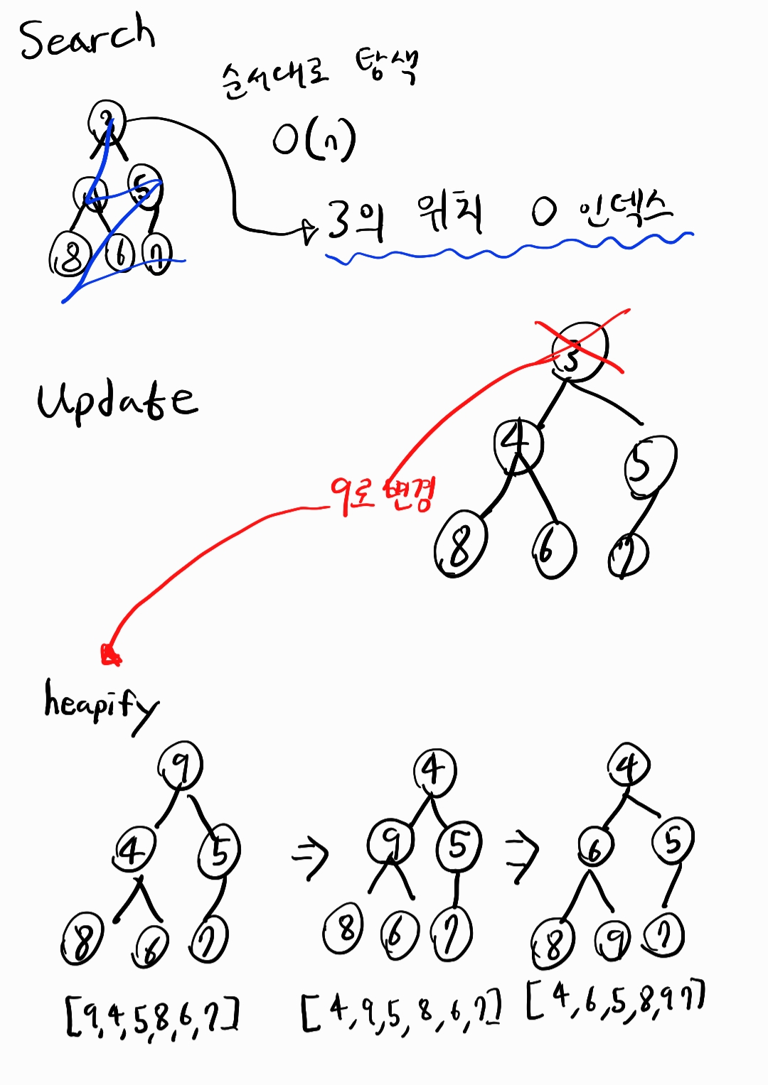 삽입,삭제는 변화 후 두 자식 트리중에 변화가 필요한 자식 트리만 선택해서 heapify시킨다.