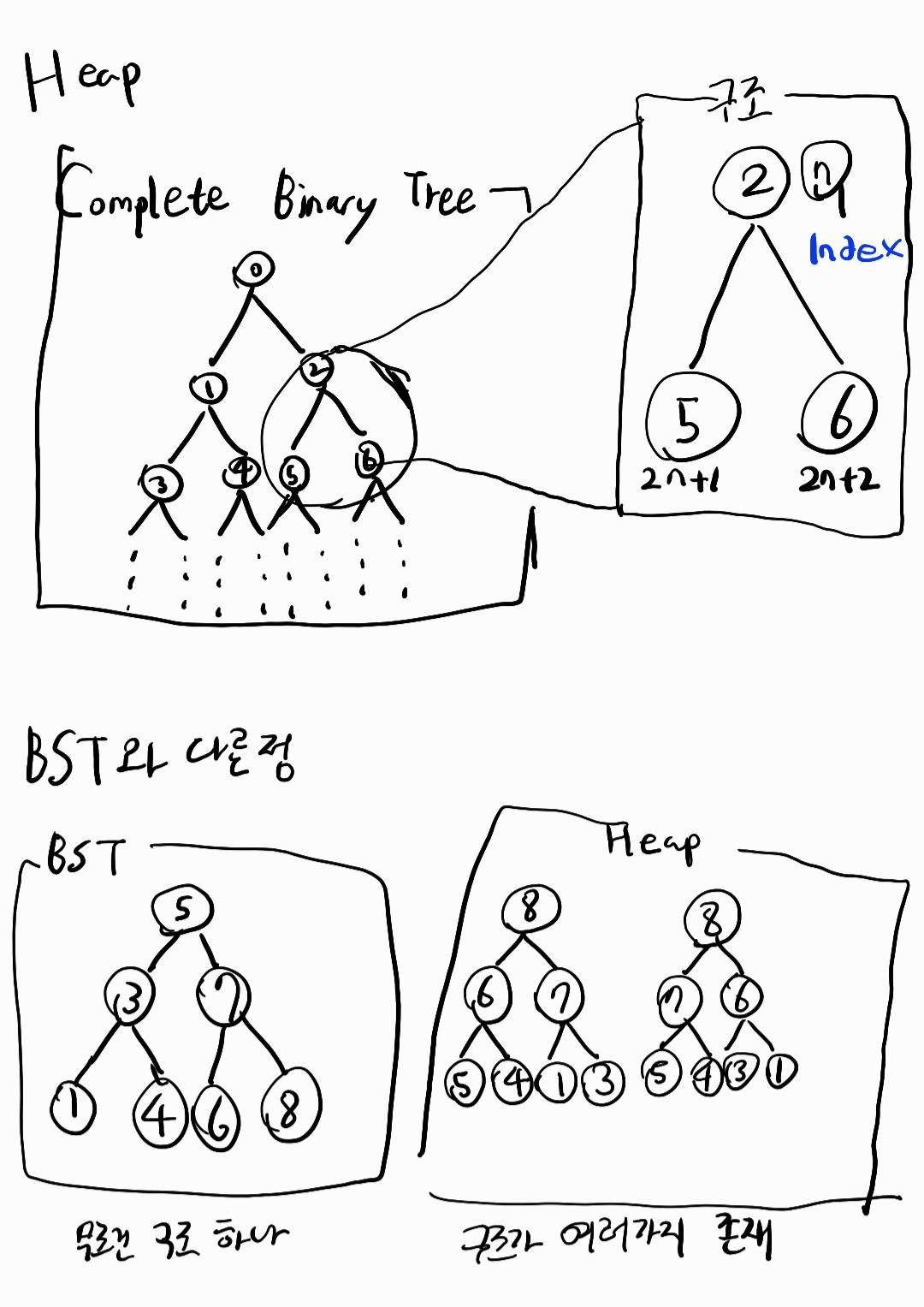 모든 부모는 자식보다 (크고 (최대 힙) /작고 (최소 힙)) 이 조건은 모든 노드에 적용된다.