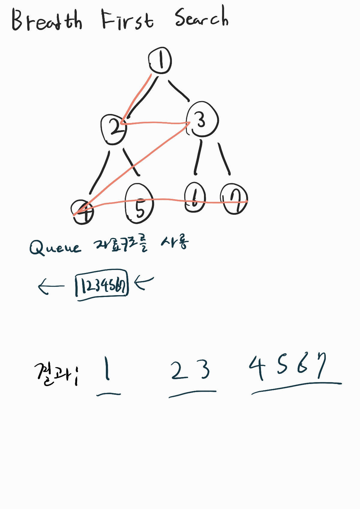 BFS(너비 우선 탐색)은 말 그대로 breadth를 기준으로 전개해나가는 탐색 방법입니다.
